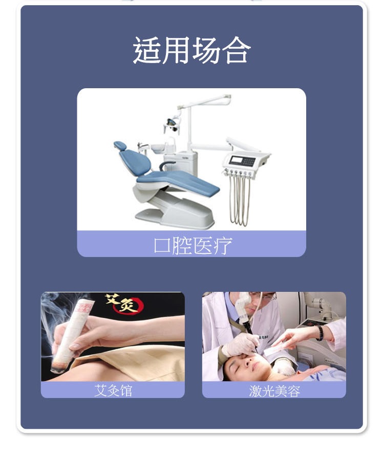 主要應用:醫療美容、艾灸、口腔氣霧、實驗室等煙塵淨化