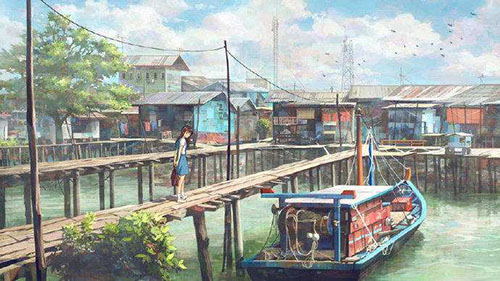 | 遠方的天一絲絲微亮了起來。是魚肚的浮白,一層層淡淡地從啟明星邊的灰藍中褪了出來,淡金色的微光散在雲邊。小趙拉開酒紅色的簾子,昂著頭,就那麽靜靜地站著。絲簾垂在兩邊,框住了這嶄新的、朦朧的一切。 小趙的舊靴子在接連幾天的暴雨轟擊下終於開了膠。她拖著四下離散的鞋底往教室踱去,淩晨5點半,她熱愛這孤獨的時刻,這讓她覺得自己與別人不一樣。每個人都不甘平凡的吧,她想。雨水混著汙水汩汩地在下水道悶聲流著,摻著河裏淨化水質用的噴泉傾灑的聲音,竟也顯得不那麽陰暗了。隻是下水道早已被不知名的塑料袋或是一些其他異物堵住了,豁口不夠呼吸,於是那些汙水和其餘發臭的垃圾一起,回旋上升,然後匯成一團黃白色的液體緩緩浮上來。像是免疫時傾瀉出的膿液,昭示著克服感染的成果,或是被同化的結果。汩汩地流著,一層一層慢慢湧上來,似乎要把小趙吞沒。那些異物,不斷的,發黃的,淌著血液的,肮髒的,又是誰的?
